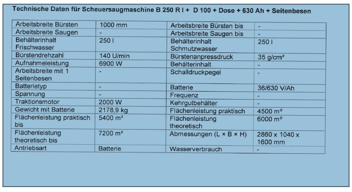Los - Scheuermaschine B250 R + D100 +Dose +630 Ah+ Seitenbesen